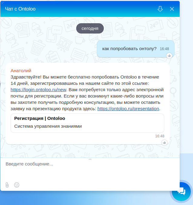 Для пользователей Битрикс24 возможно установить приложение Ontoloo через маркет.